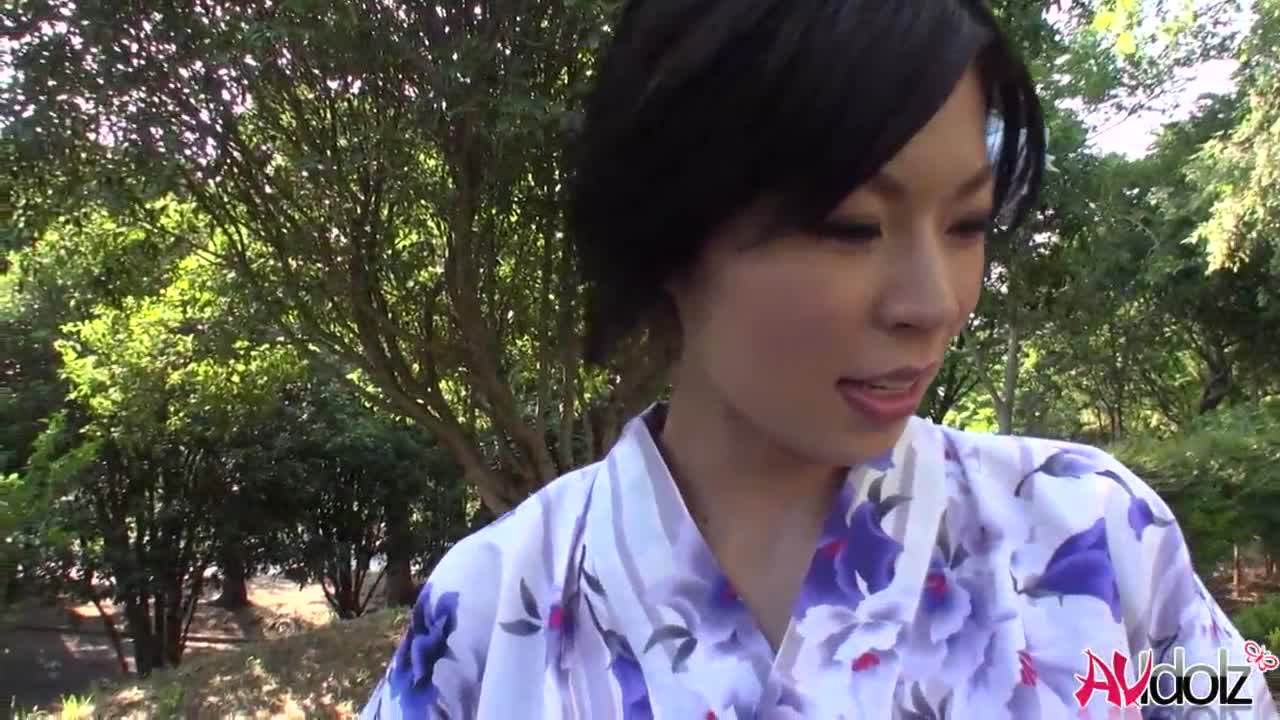 Japanese woman Saki Aoyama wore a kimono for uncensored sex with big natural tits.