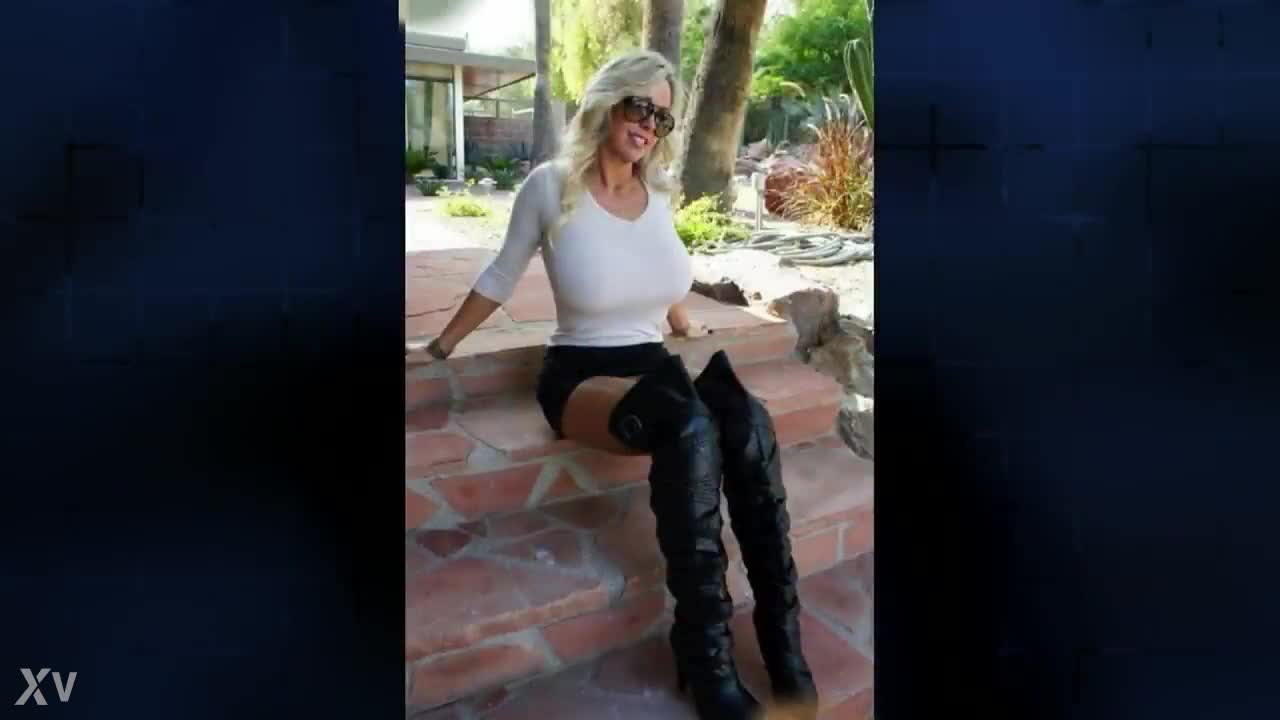 At the party, Tammy shows off her big natural tits and ass in bikini and heels, using toys for a creampie.