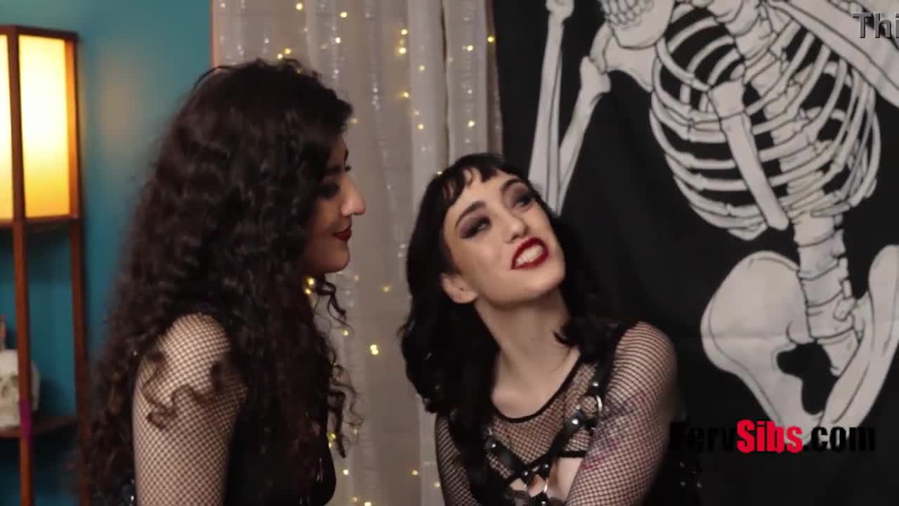 cute blonde teen in halloween costume caught and teased into rough threesome