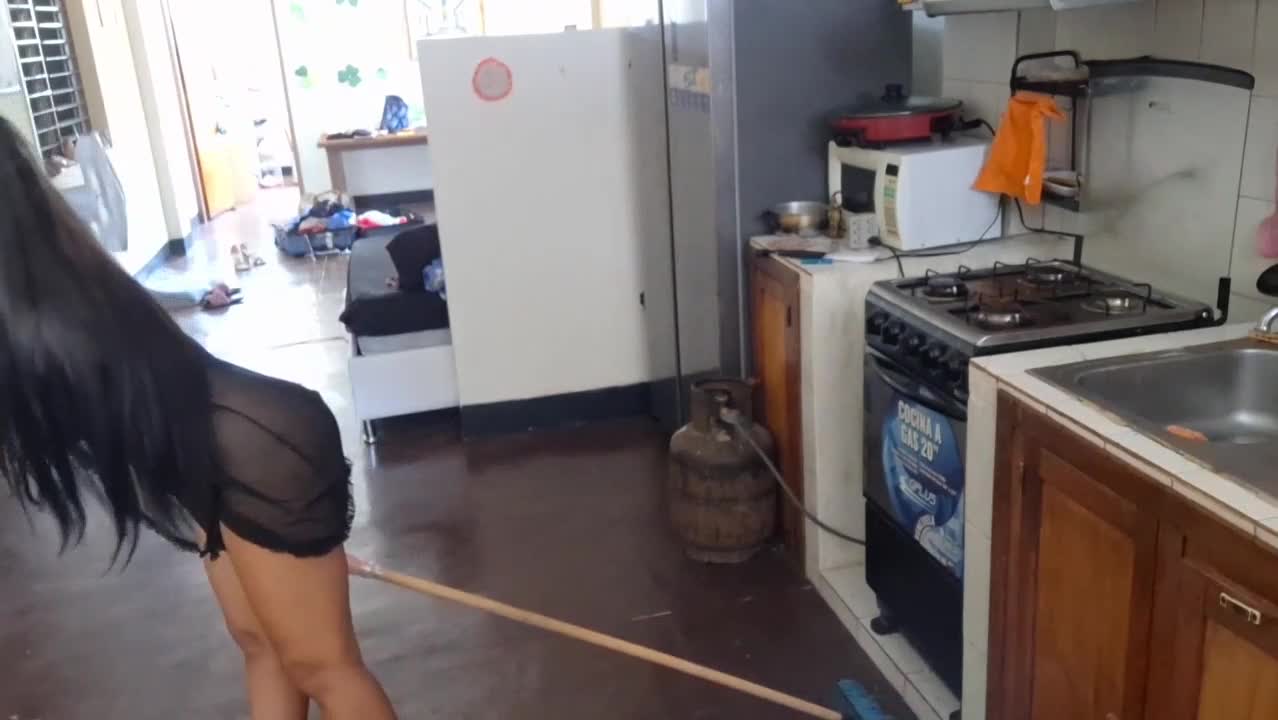 Sex in the kitchen with my fat girlfriend doggy style bent over in pantyhose