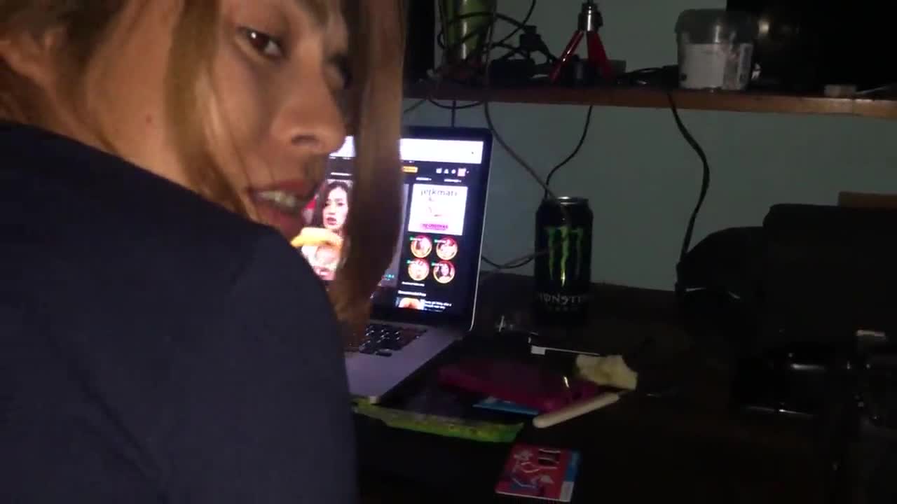Caught my woman watching porn, so horny she begged for a creampie!