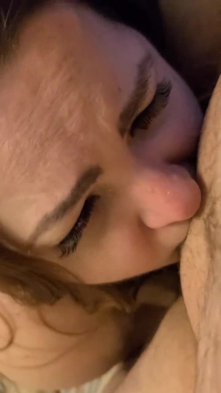 Devoted Amateur Brunette Gags Hard While Sucking Thick Dick