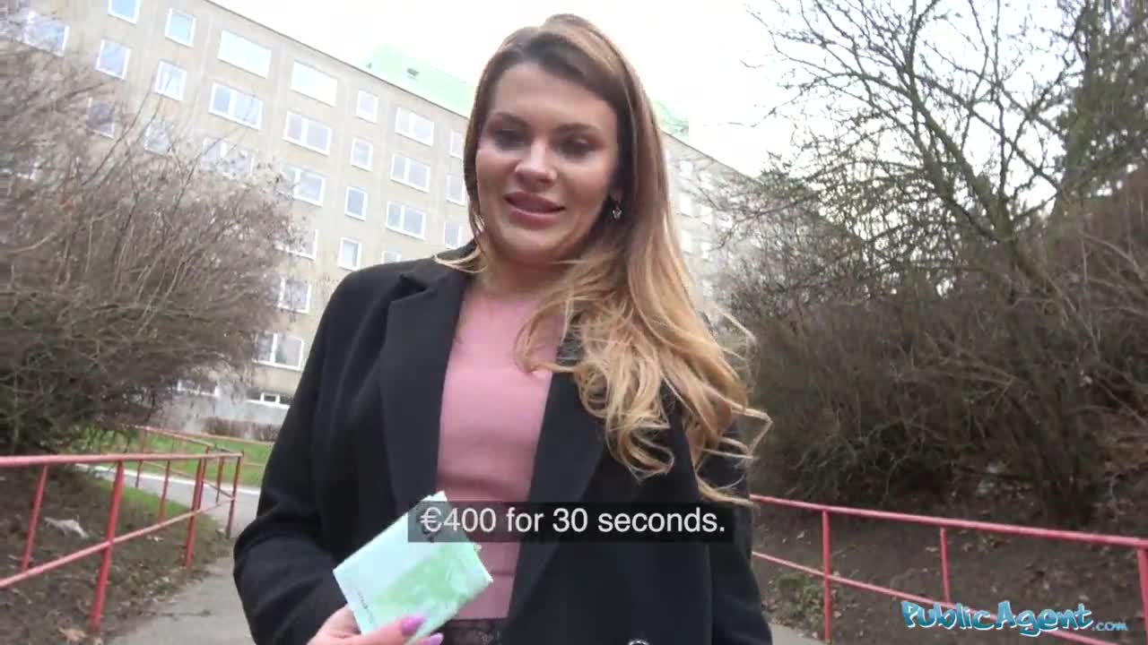 public agent bangs shy blonde teen vera jarw outside